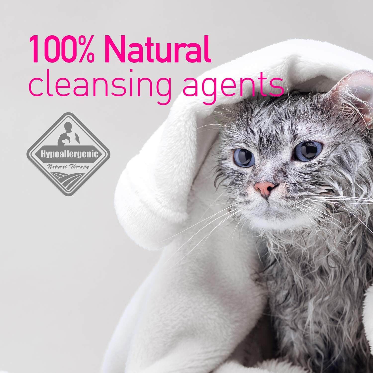 100% natural and hypoallergenic cleansing ingredients gently cleanse the hair, suitable for cats